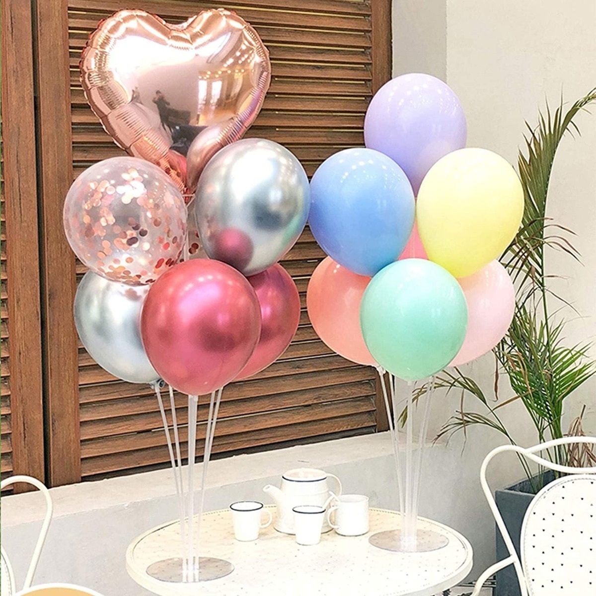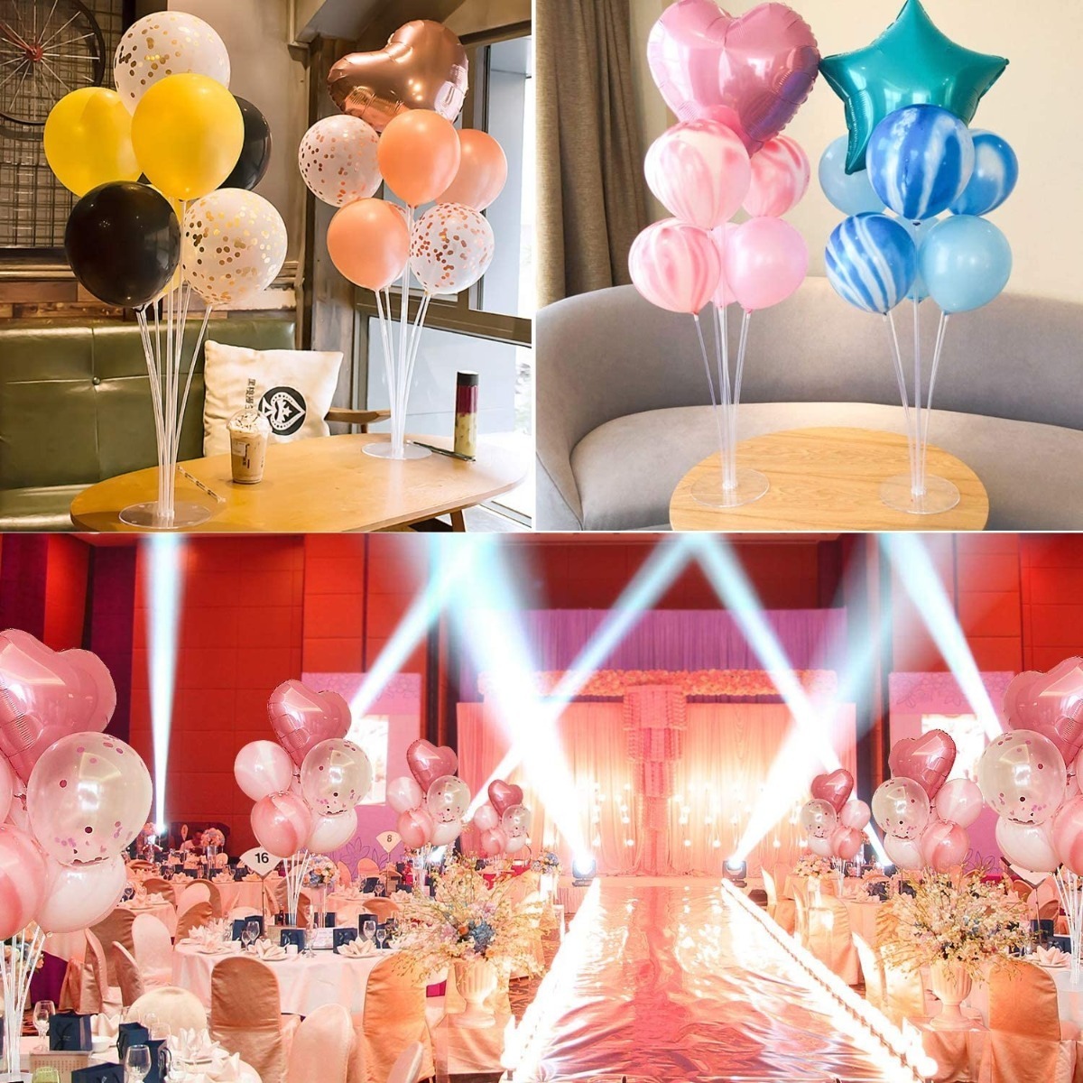 Se puede reutilizar, los palos de globo con tazas separadas hacen que sea más fácil sostener globos con una base para poner en el escritorio para centros de mesa.