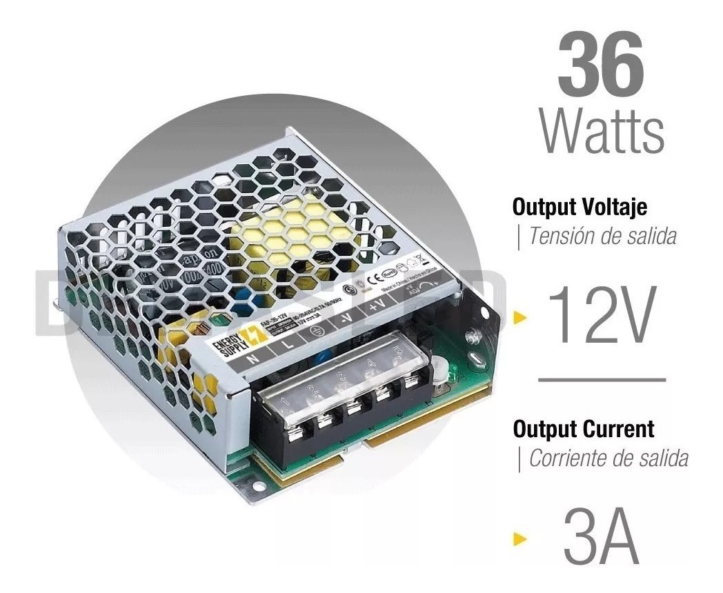 Fuente Switching Transformador 12v 3a 36w Metálico Tira Cctv