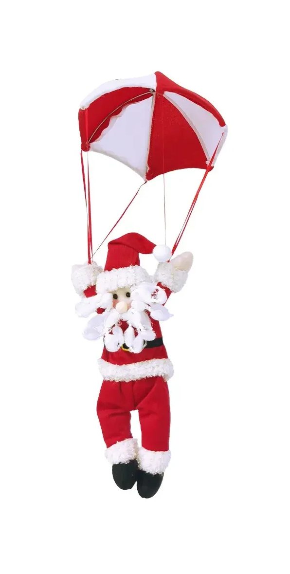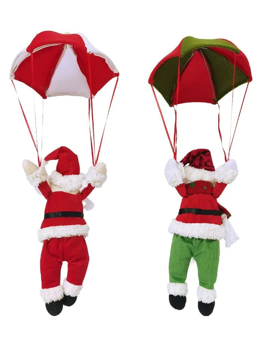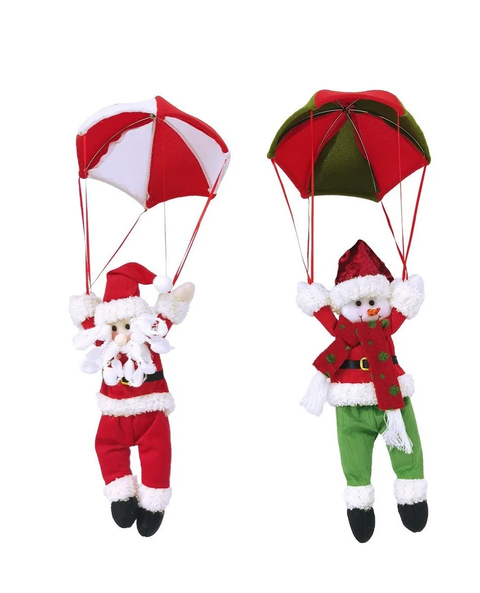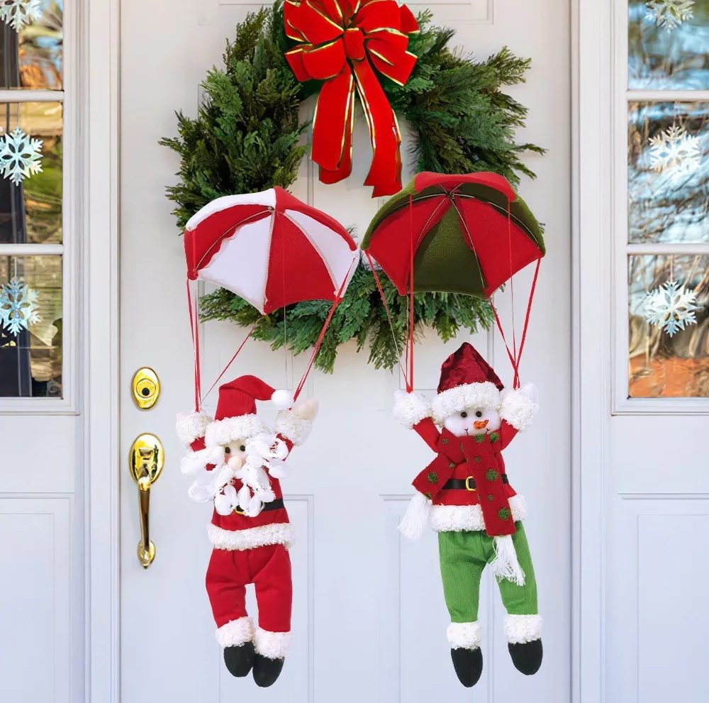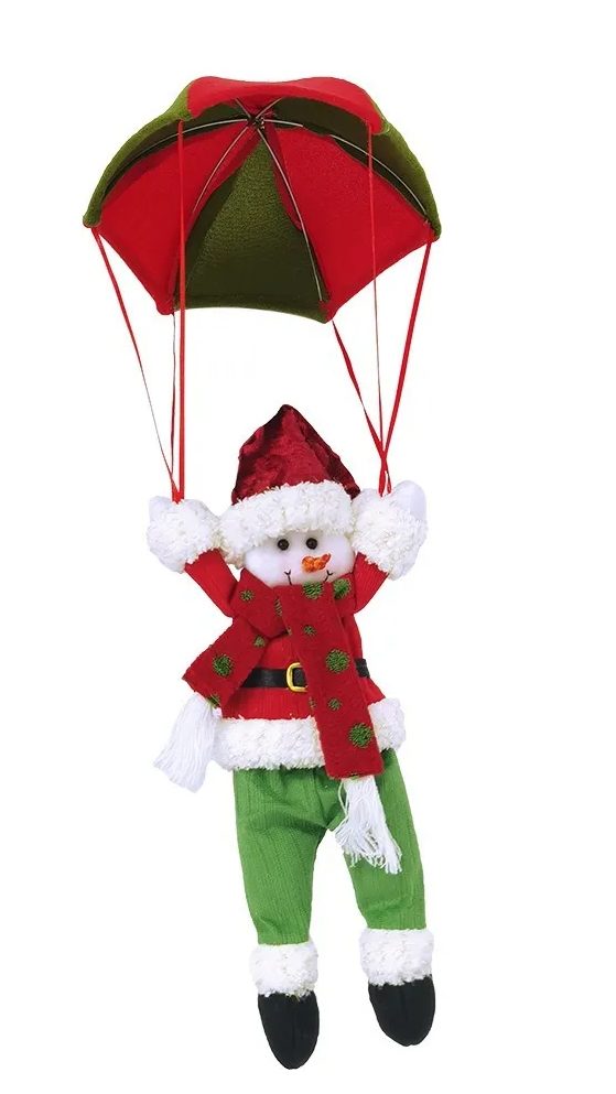 Divertidos y originales para decorar en Navidad. Incluye Papá Noel y Muñeco de Nieve con paracaídas de tela en colores rojo, blanco y verde. Cada muñeco mide 55 cm aprox. con el paracaídas desplegado. Ideales para colgar en el árbol, ventanas, techos o en la entrada del hogar.